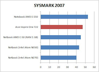 Based on the result, battery of Acer Aspire One 722 can stand life until 375 minutes or approximately 6 hours 15 minutes. It is good and common for laptop with the low-end price. And based on the information, Acer Aspire One 722 is sold, Rp 2.799.000 (versi Linux) and Rp 3.149.000 (versi Windows7 Starter).